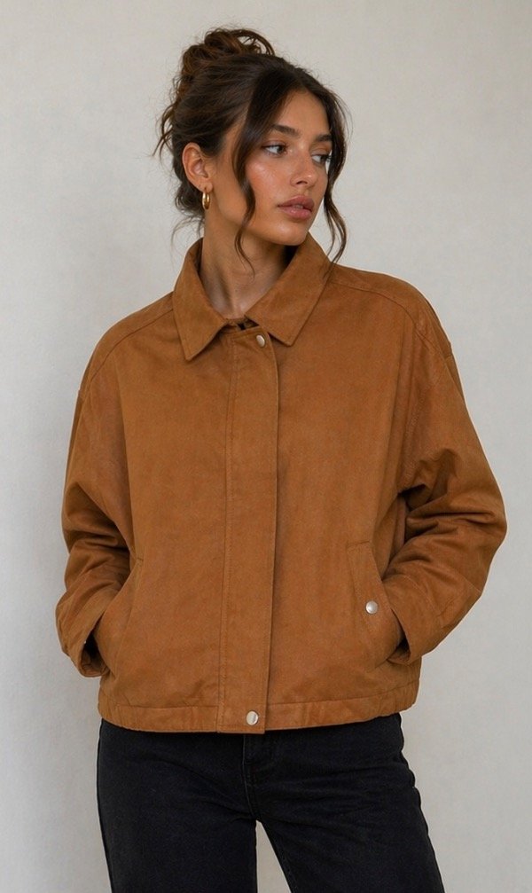 Bomber de gamuza con elástico abajo y bolsillos laterales