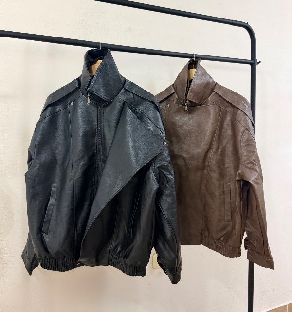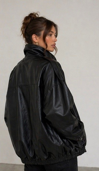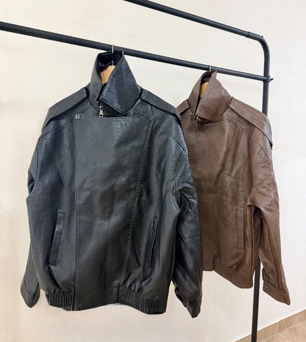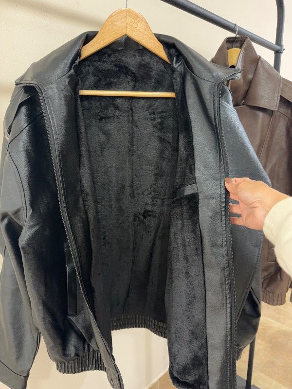 Campera oversize con cuello alto, forrada por dentro con piel y bolsillo interno